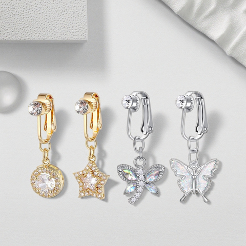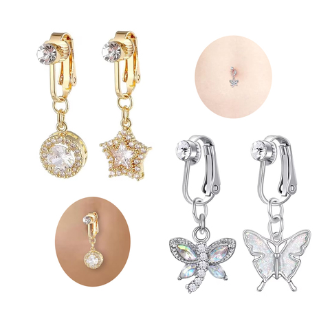 Gold Butterfly Stainless Steel Body Jewelry Fake Navel Piercing Belly Button Rings False Clip on Non Piercing Belly Ring