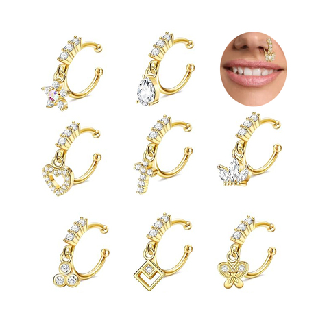 Cubic Zirconia Cartilage Earring 20G Dangle Nose Rings Hoops for Women Flower Butterfly Star Fashion Body Jewelry