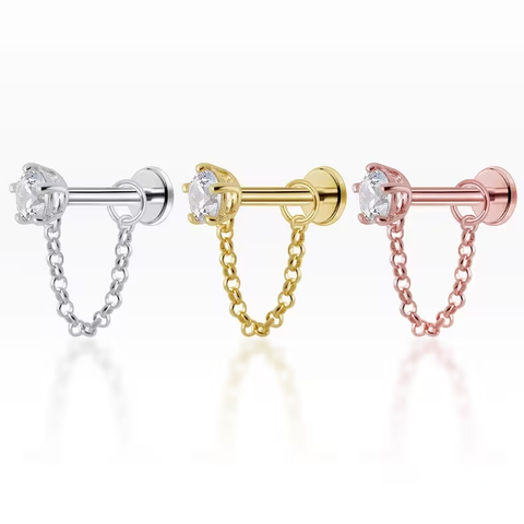 CZ Dangle Chain Screw Flat Back Earring Helix Piercing Tragus Cartilage Fashion Body Jewelry for Women Men