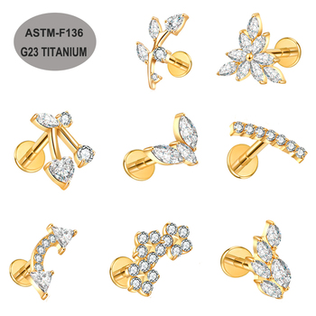 ASTM-F136 G23 Titanium Bloem Hart Vlinder Kruis Intern Schroefdraad Labret Tragus Helix Ringen Mode Body Piercing Sieraden
