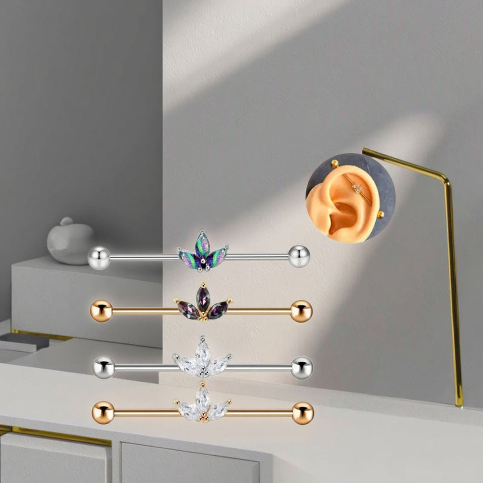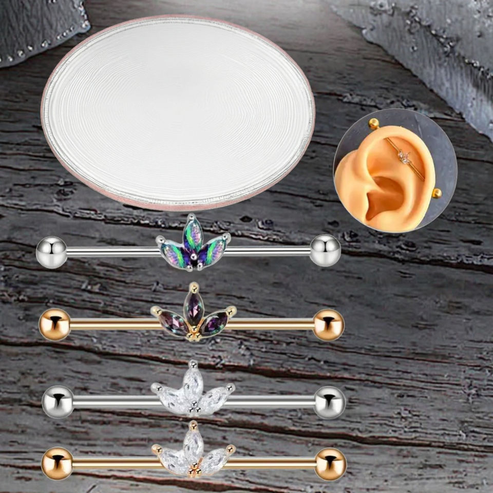 Unisex Stainless Steel Three Stones Industrial Barbell Ring Gold Plated Fashion Earrings Body Jewelry Scaffold Piercing