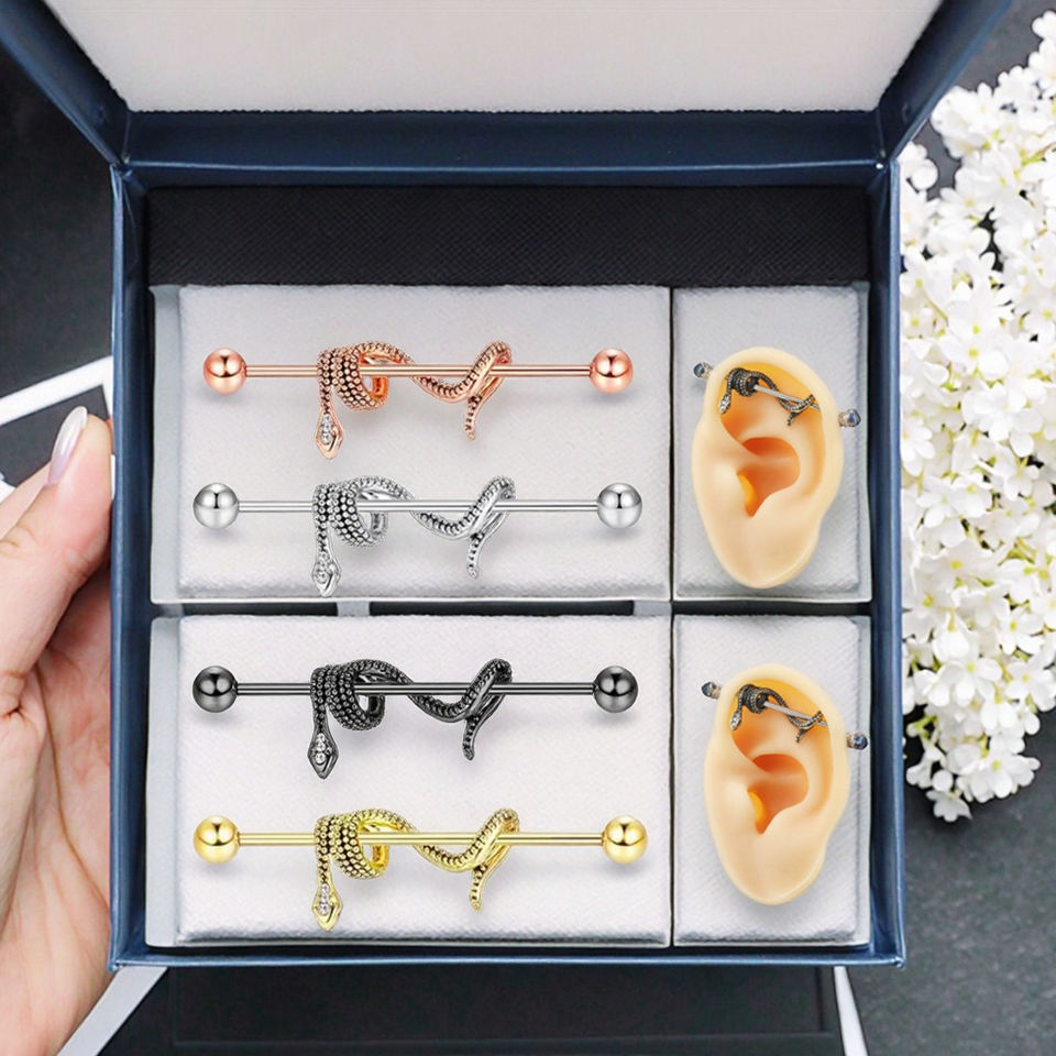 Surgical Steel Scaffold Piercing Snake Industrial Barbell Rings Stainless Steel Ear Piercing Fashionable Snake Body Jewelry