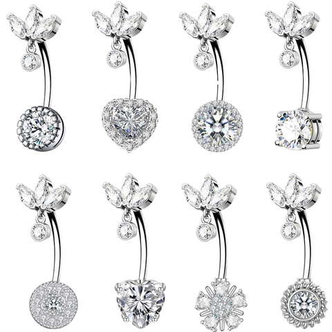 Stainless Steel Reverse Belly Piercing Jewelry Clear Zircon Dangle Belly Button Rings Fashion Body Jewelry for Women Men