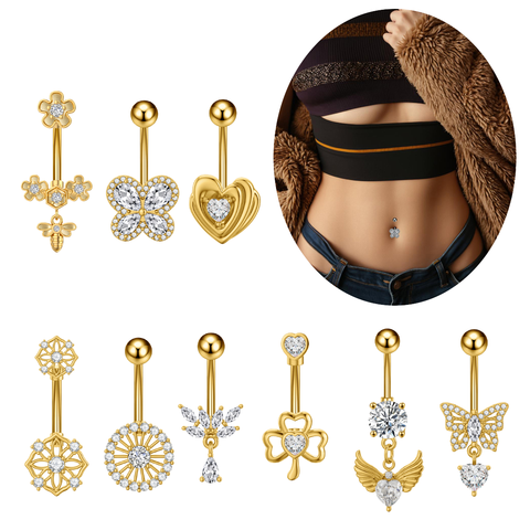 Hot Sale Stainless Steel Body Jewelry Gold Plated Heart Shaped Belly Button Ring Zircon Navel Piercing for Women and Men