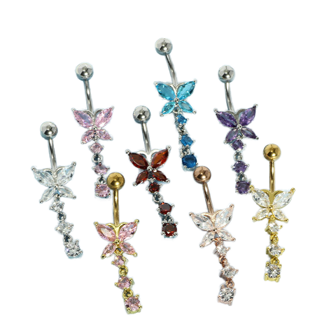 Stainless Steel Belly Button Rings Crystal Belly Piercing Butterfly Dangle Navel Piercing Fashion Body Jewelry for Women