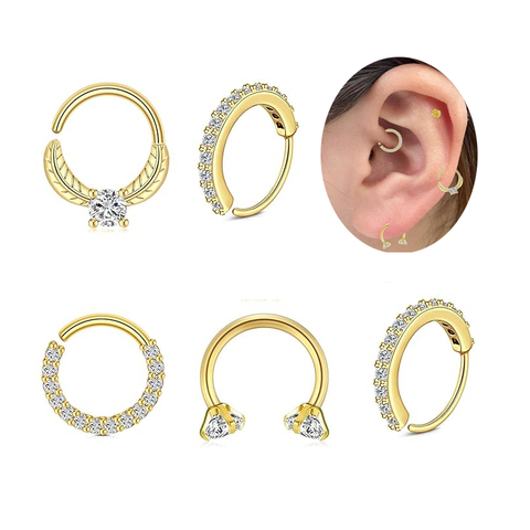 Helix Daith Piercing for Women Men Nostril Piercing Clear CZ Septum Clicker Stainless Steel Cartilage Earrings
