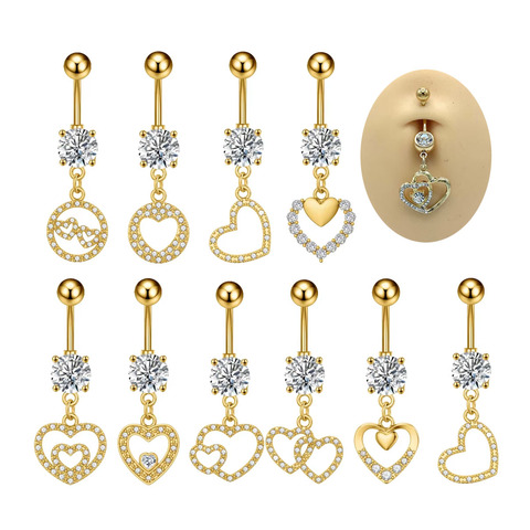 Dangle Heart Belly Button Rings Gold Plated Navel Piercing Jewelry Fashion Body Piercing Jewelry for Women Men