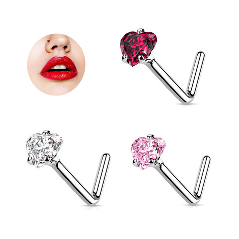 Xinfocus Heart Shaped Zircon Nose Piercing Stainless Steel Nose Screw Jewelry Fashion Piercing Body Jewelry for Women Men