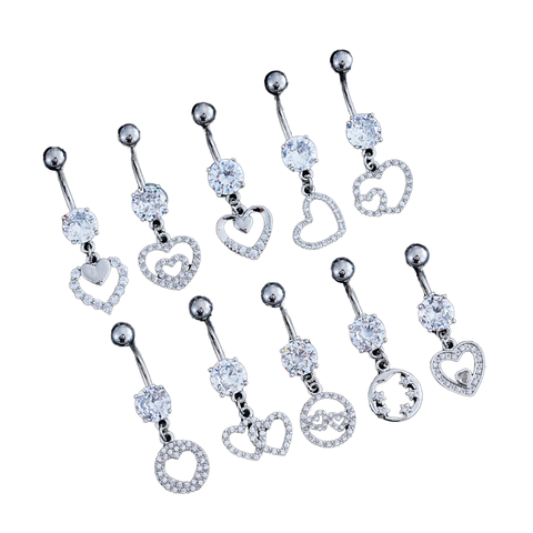 Xinfocus High Quality Crystal Heart Belly Ring 2025 New Design Navel Piercing Jewelry Stainless Steel Body Jewelry Wholesale
