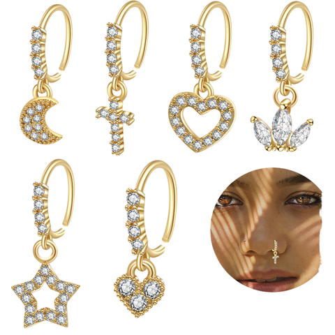 Xinfocus Hot Sale Moon Heart Nose Stud Ring Stainless Steel L Shape Nose Piercing Fashion Body Jewelry for Women