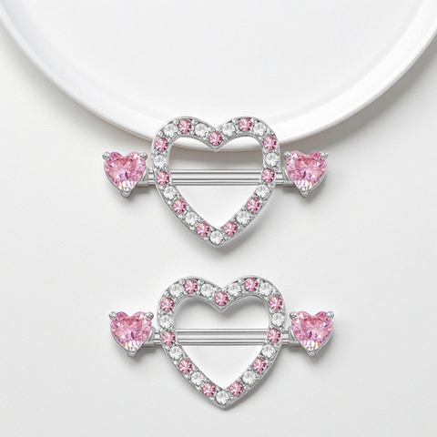 2025 Best Selling Body Piercing Jewelry Crystal Love Heart Nipple Rings for Women Sexy Nipple Shield