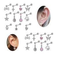 Stainless Steel Piercing Jewelry Butterfly Cross Heart Ear Stud Ring Dangle Earrings Fashion Women Helix Piercing Jewelry