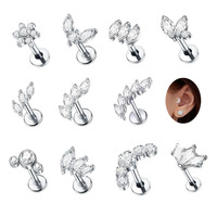 Crystal Dangle Tragus Cartilage Earring Stainless Steel Ear Piercing Jewelry Diamond Zircon Ear Piercing Lip Stud Ring Labret