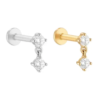 Gold Plated Dangle Lip Ring Labret Piercing Jewelry Zircon Stone Stainless Steel Helix Cartilage Earrings Ears Piercing