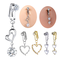 Fake Heart Belly Piercing Gold Plated Fake Body Jewelry Crystal Heart Dangle Zircon Navel Piercing Fashion Body Jewelry