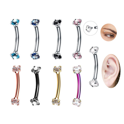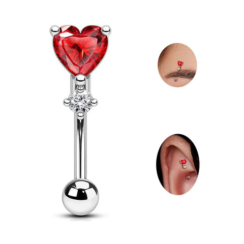 2025 New Trendy Design Prong Set Heart Surgical Steel Eyebrow Rings Curved Barbells Stainless Steel Rook Piercing Cartilage