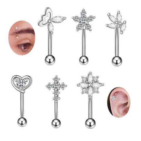 2025 Trendy Rook Piercing Cartilage Curved Barbell Ring Sexy Eyebrow Piercing Heart Butterfly Opal Eyebrow Body Jewelry