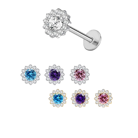 Cubic Zircon Labret Helix Tragus Cartilage Flat Back Earring Gold Plated16G Cartilage Stainless Steel Body Jewelry for Women Men