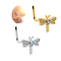 L Shape Nose Piercing Crystal Dragonfly Nose Stud Rings Stainless Steel Nose Body Jewelry Fashion Women