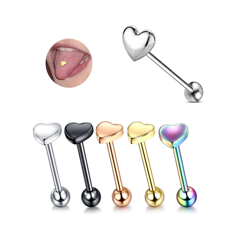 Heart Tongue Ring Straight Barbell Stainless Steel Tongue Piercing Fashion Piercing Jewelry Sex