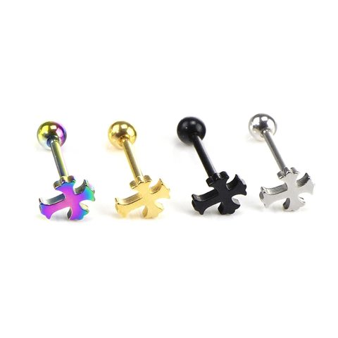 Stainless Steel Piercing Jewelry Punk Style Cross Tongue Piercing Barbell Ring Unisex Body Jewelry