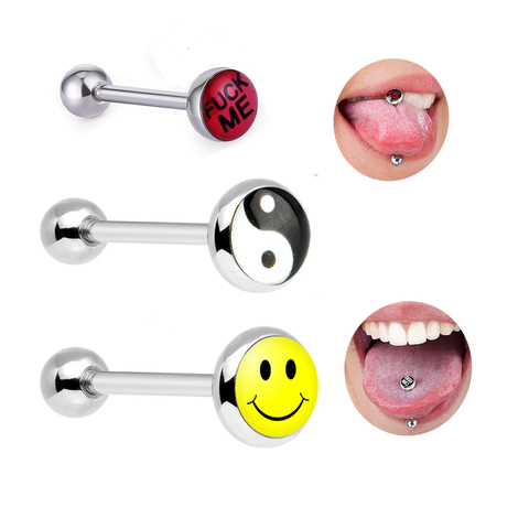 Xinfocus Logo Tongue Ring Body Piercing Jewelry Stainless Steel Unisex Logo Piercing Fashion Sexy Body Jewelry for Women Men