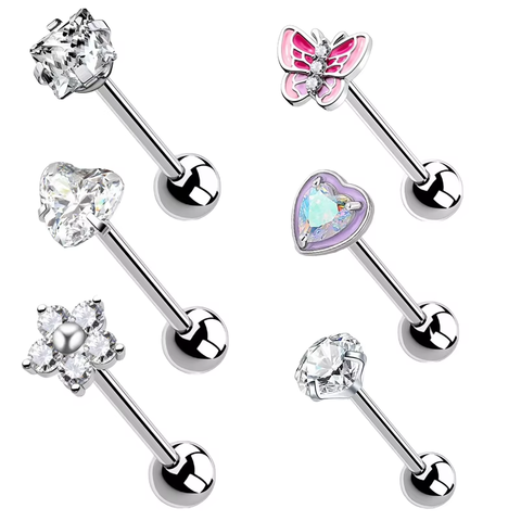 Xinfocus Tongue Ring Sex Heart Butterfly Flower Straight Barbell Stainless Steel Tongue Piercing Fashion Piercing Jewelry