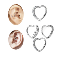 Heart Daith Piercing Surgical Steel Clicker Heart Hinged Segment Ring Cartilage Earring Fashion Body Jewelry for Women Men