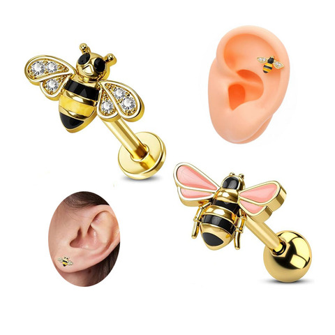 Trendy Design Helix Cartilage Earring Bee Lip Piercing Labret Rings Monroe Piercing Jewelry Fashion Women Earring Flat Back