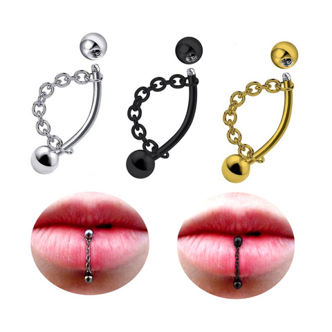 Xinfocus Trendy Labret Piercing New Design Chain Lip Stud Ring Stainless Steel Piercing Fashion Body Jewelry for Women