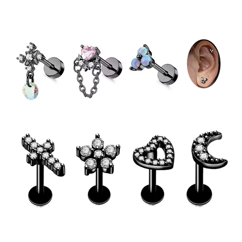 Flat Back Earring Xinfocus Ear Piercing Jewelry Helix Piercing Heart Tragus Cartilage Fashion Piercing Body Jewelry