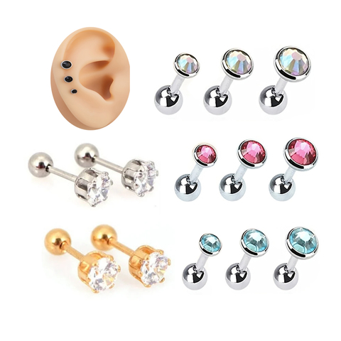 Xinfocus New Design Tragus Crystal Cartilage Barbell Earring Women Ear Stud Body Piercing Jewelry Helix Ear Ring Indian Earring