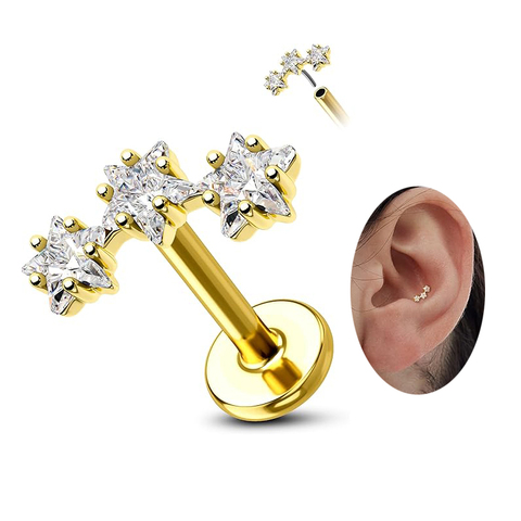 Triple CZ Flat Back Earrings Gold Plated Helix Conch Cartilage Tragus Flat Back Earring Stainless Steel Labret Lip Piercing
